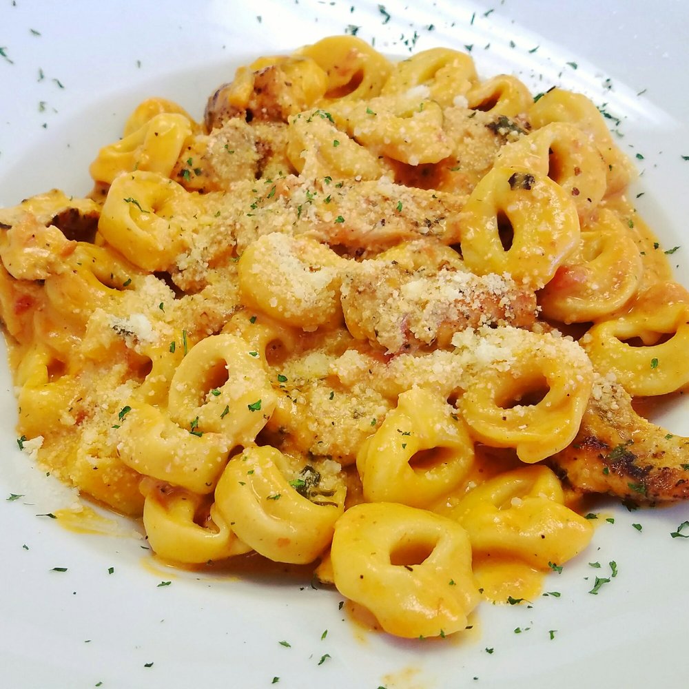Onions, mushrooms and peppers in a marinara sauce. Includes salad, your choice of side, and bread.